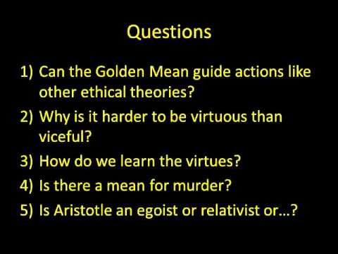 The Golden Mean }}- Most ethicists think the strongest ethical theories are Utilitarianism, Deontology, and Virtue Ethics. Aristotle is a virtue ethicist. In this video, I explain his golden ...